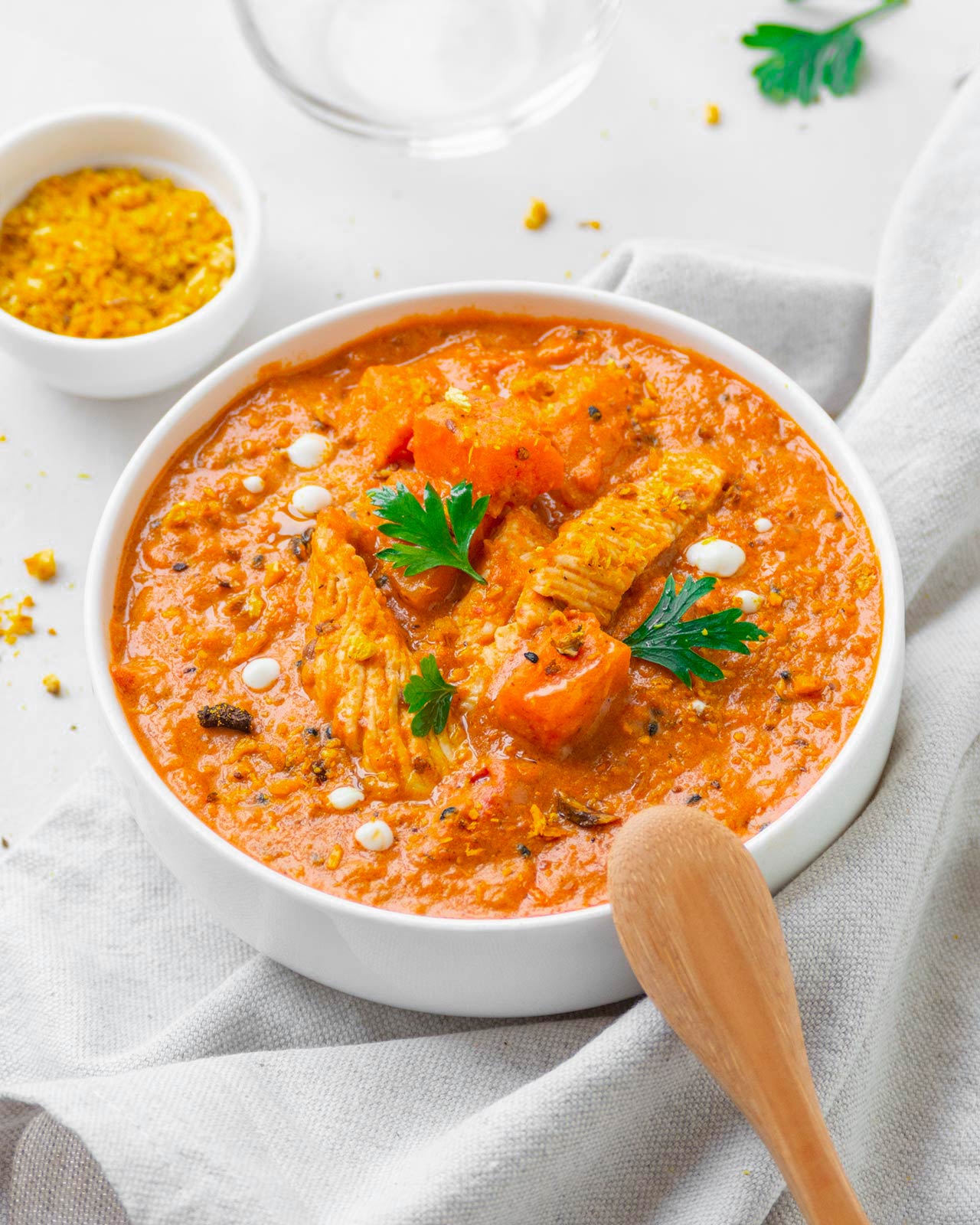 Una ricetta cremosa e versatile: questo Curry indiano di tacchino e patate dolci ha tutto il profumo delle spezie, del latte di cocco e dei funghi shiitake.