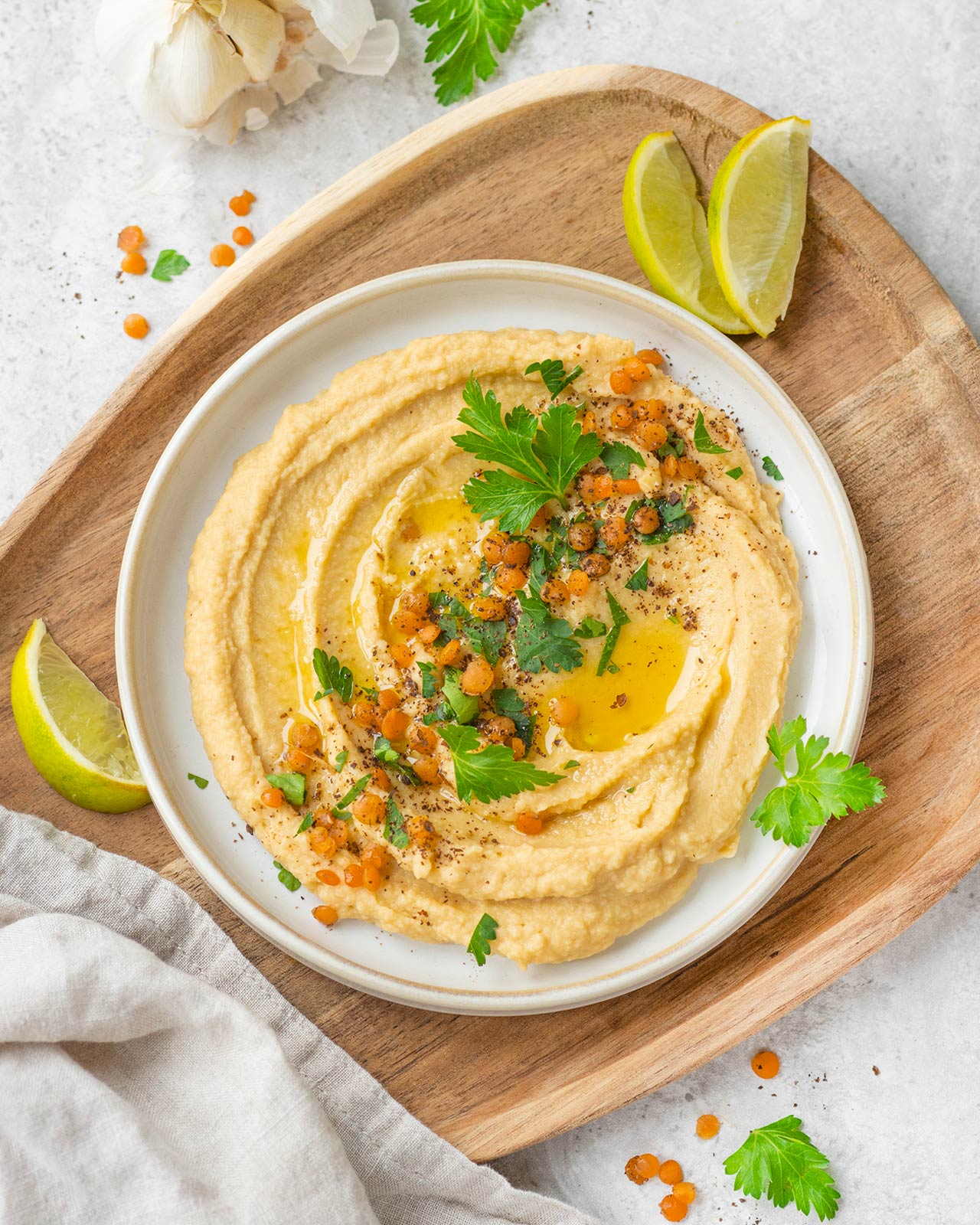 Questo hummus di lenticchie rosse, cremoso e rapido da preparare, è una base versatile da servire con verdure, pane tostato o per arricchire un piatto leggero.