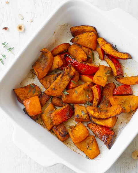 Il timo è una delle erbe aromatiche che preferisco quando lavoro con la zucca: è discreto ma presente, e riequilibra la dolcezza con una nota verde.