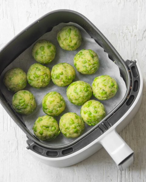 Queste coloratissime polpette di piselli sono un gustoso secondo piatto vegetariano. Leggere e facili da preparare, in forno o in friggitrice ad aria.